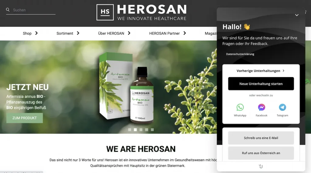 | Kompatible Messenger | Website-Chat, WhatsApp, Facebook, Telegram, Instagram, SMS, Apple Business, Viber, Google Business, WeChat, E-Mail | Website-Chat, WhatsApp,Instagram Direct, Facebook Messenger, Telegram,Threema, SMS, E-Mail |