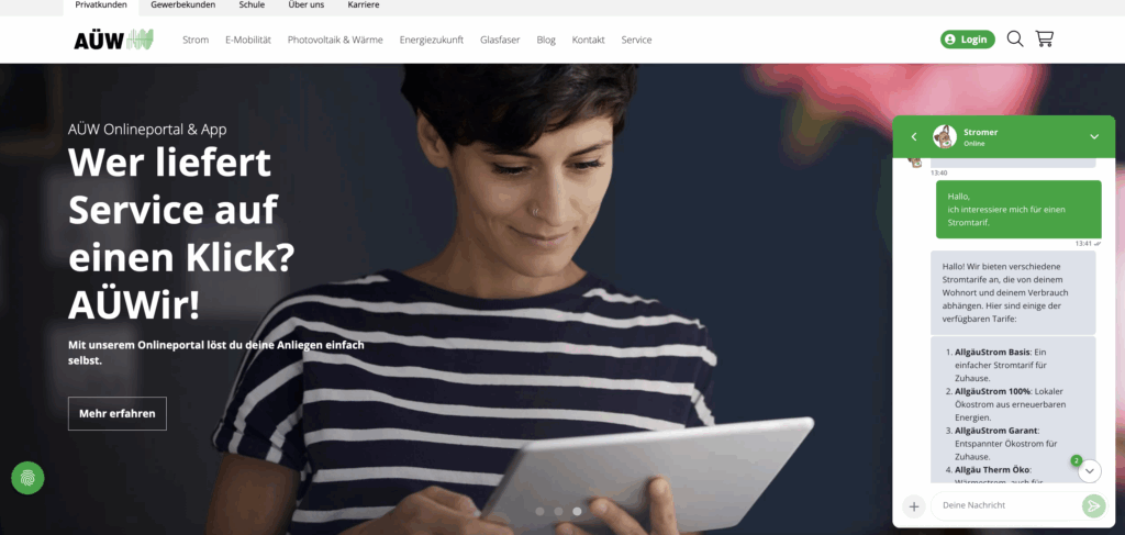 Der freundliche KI-Chatbot „Stromer“ übernimmt die Beantwortung einfacher Anfragen, berät Kunden zu Tarifen und leitet Unterhaltungen komplexere Fälle, gezielt an Mitarbeitende weiter.