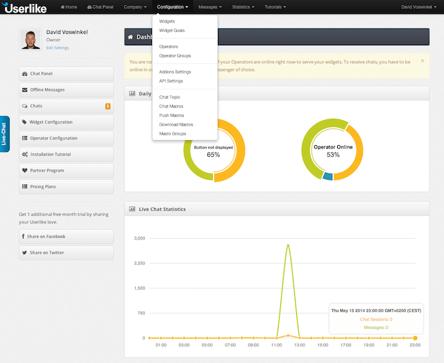 Once you enter the chat panel we show wether other operators or webvisitor are online and ready to chat. Having none online resulted in a empty looking chat panel and made first time user feel a little lost. So we added visual feedback for that state.