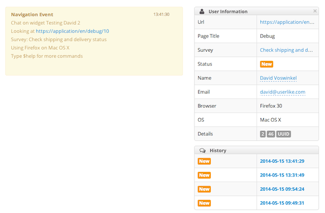 Further improved is the chat panel main view to give you quick access to the users chat history. With one blink you will see if the user is a returning chatter with a chat history that might hold interesting information that will help during the current session.