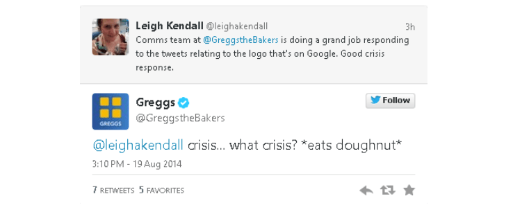 Lesson one: the use of humour will often lead to followers admiring your stance and applauding you openly on social media. While the story of the logo was shared extensively, so too was Greggs response and they have since enjoyed a boost in business.
