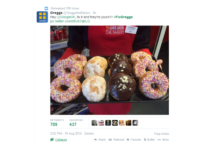 This prompted the Google UK team to respond quickly, offering to fix the issue within the hour should Greggs throw in a sausage roll or two. The issue rocked on throughout the evening with Greggs’ team posting reply after reply that were very amusing and more importantly, showed the world that they can laugh at themselves.