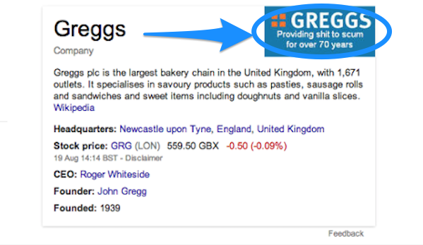 Now let’s take a look at another bakery, based in the UK, which came in for ridicule after some bright spark changed its logo and uploaded it to Google Places.