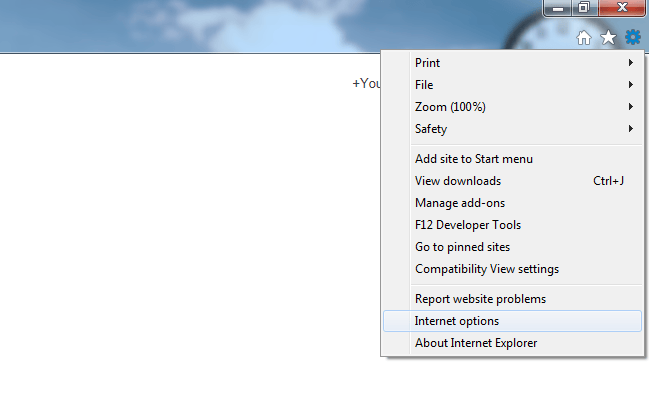 You can set the Chat Panel to be launched every time the Internet Explorer launches. To do so, start by opening an Internet Explorer window and click on the right top tool, then select “Internet Options”.
