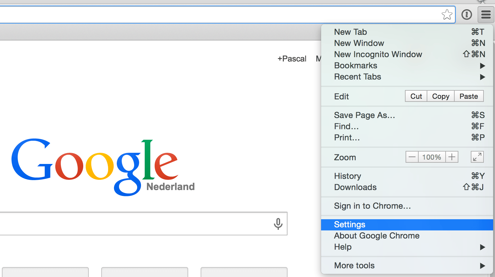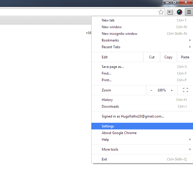 To launch the Chat Panel from your Google Chrome browser you need to first click on the three stripes “Control” Menu in a Chrome Window. Then, select the option “Settings”.