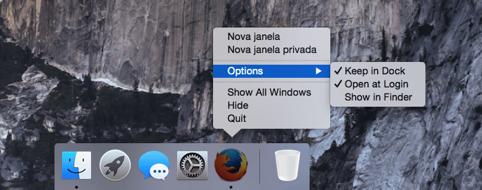 Similarly to Google Chrome (and other browsers) setting the Chat Panel to be your primary page when starting Firefox is also very easy. To set up this process the first thing you need to do is selecting Firefox icon holding the cmd button and check the option “Open at Login”.