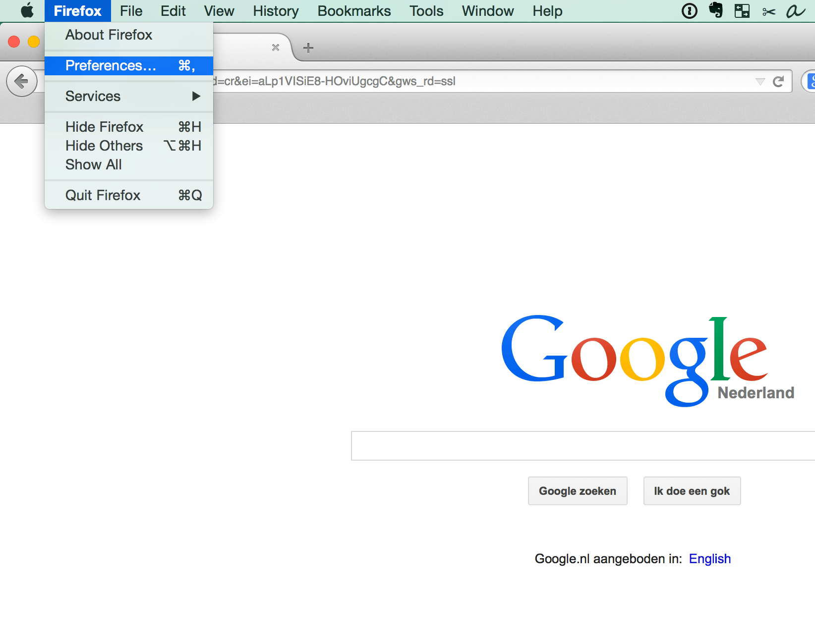 After enabling the automatic launch of Firefox Browser, you should define the automatic launch of Userlike Chat Panel using this Browser. To do so, open a Firefox Window and select “Preferences” from your toolbar.