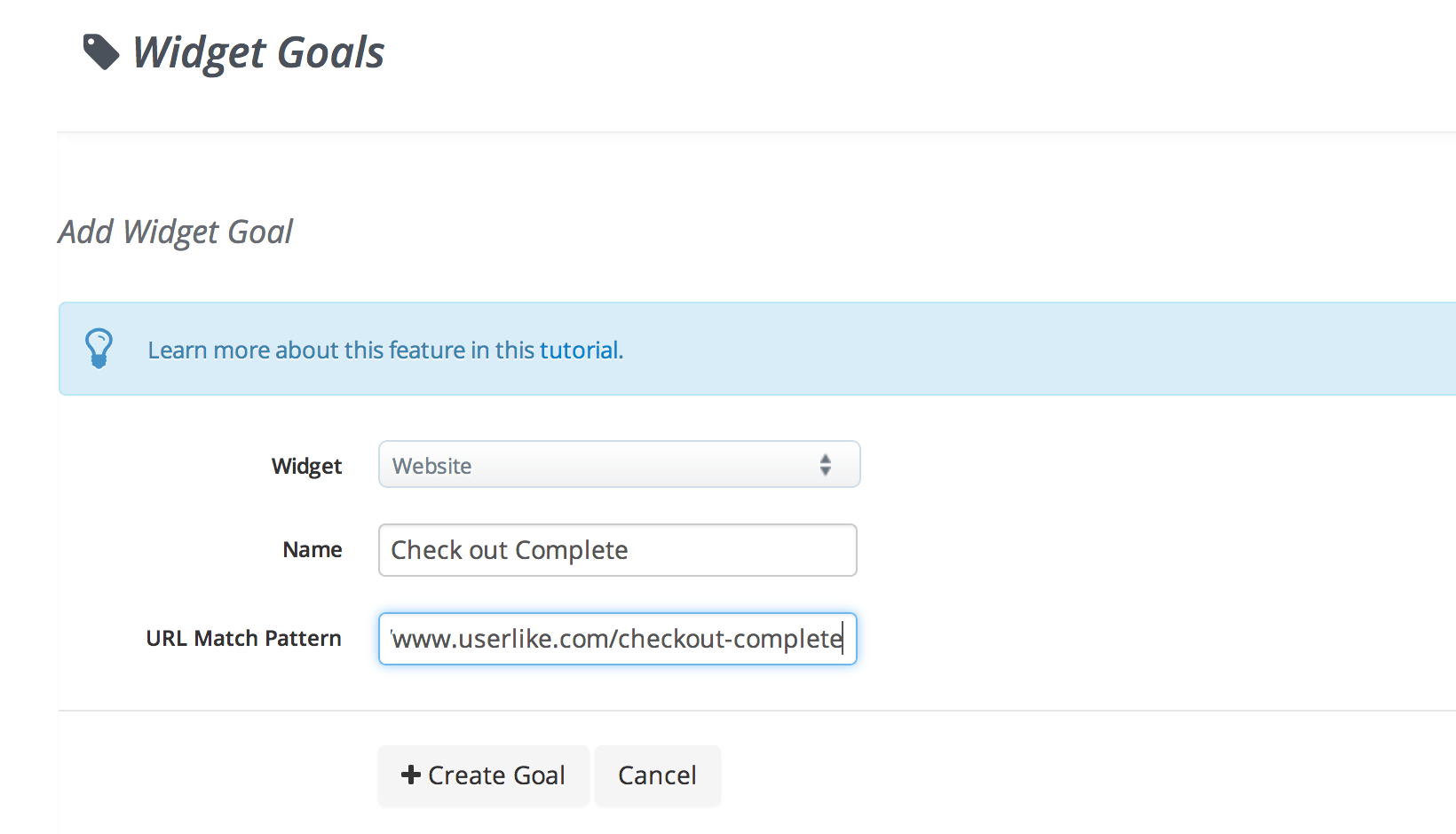 The first step is for you to set up the goals in your live chat dashboard. Userlike offers a feature through which you can set up certain URL’s as Goals. When a visitor reaches this URL during a chat, the Chat Transcript indicates that this specific goal was reached. An obvious Goal to set up would be the URL that coincides with the Checkout Completion.