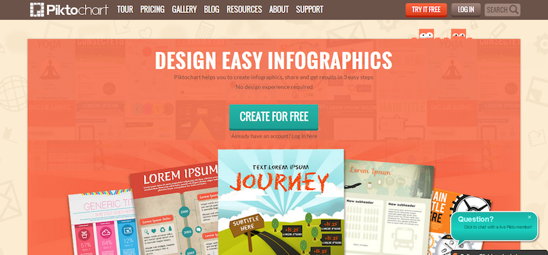 Piktochart is a ready-to-use framework to design and produce your content free of charge and with professional design that will leave your visitors impressed.